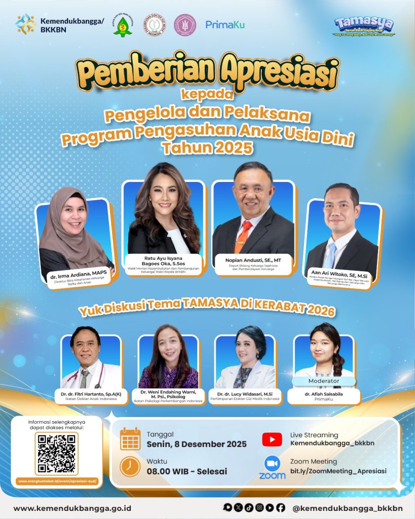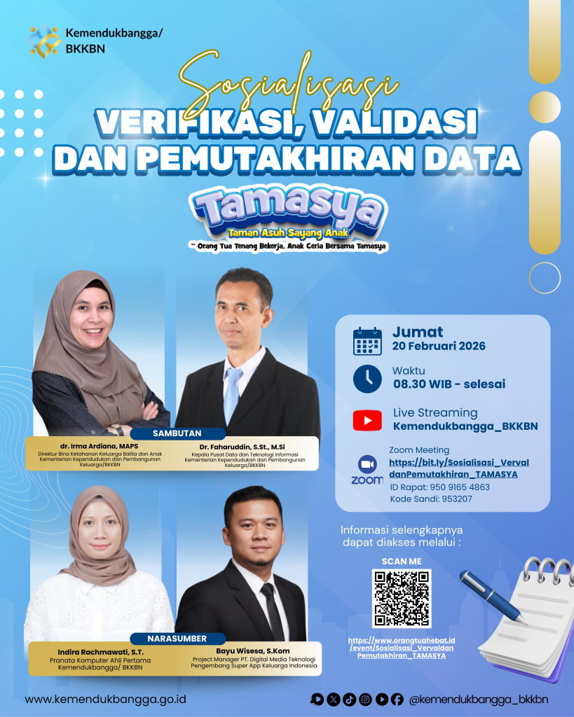 Zoom Meeting Virtual Background Formulir Daftar Hadir Materi Narasumber Sertifikat Peserta Sertifikat dapat diakses pada Senin, 29 Desember 2025. Informasi lebih lanjut dan pertanyaan dapat diajukan melalui pesan (DM) pada instagram @ditbalnak.kemendubangga.