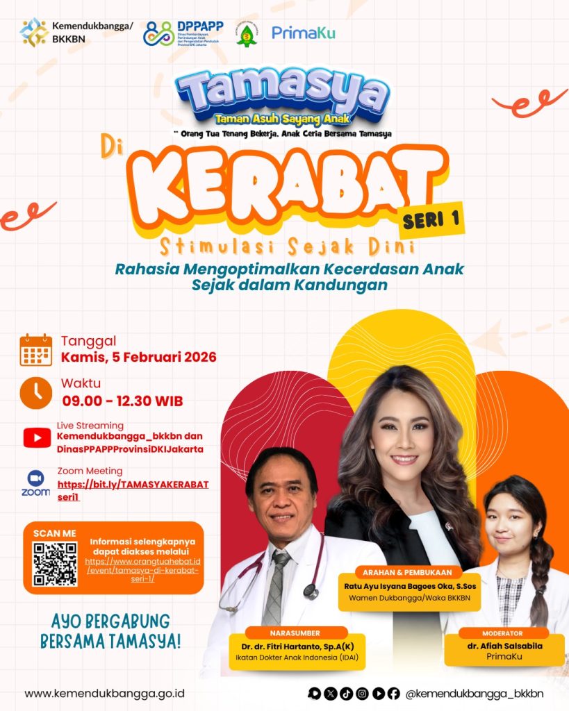 Zoom Meeting Virtual Background Tata Tertib Formulir Daftar Hadir & Pre Test Formulir Post Test & Evaluasi Formulir Mengajukan Pertanyaan Formulir Konfirmasi Pemenang Materi TAMASYA di KERABAT Sertifikat Peserta Informasi lebih lanjut dan pertanyaan dapat diajukan melalui pesan (DM) pada instagram @ditbalnak.kemendubangga.