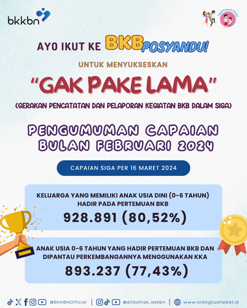 [GAK PAKE LAMA] Halo Orang Tua Hebat! Terima kasih dan apresiasi kepada seluruh pihak yang turut terlibat menyukseskan “Gerakan Pencatatan Pelaporan Kegiatan BKB Dalam SIGA” atau yang dikenal dengan “Gak Pake Lama” pada Periode Bulan Agustus 2024. Selamat untuk provinsi dengan capaian keluarga yang memiliki anak usia dini (0-6 tahun) hadir pada pertemuan BKB serta […]